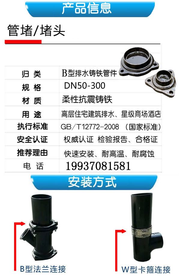 離心機(jī)制B型柔性抗震鑄鐵排水管件堵頭 管帽 排水鑄鐵管件,柔性抗震鑄鐵,快速安裝,耐高溫,耐腐蝕;用于高層住宅建筑排水、星際商場(chǎng)酒店。