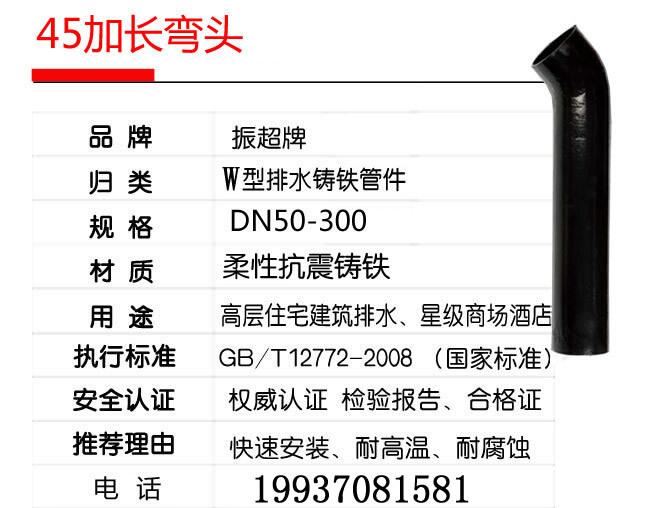 柔性機(jī)制鑄鐵管下水管件加長(zhǎng)45度彎頭