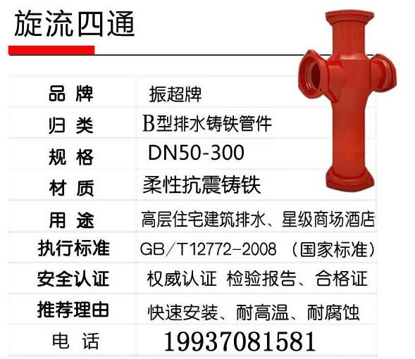 振超牌B型鑄鐵排水管件,柔性抗震鑄鐵,快速安裝,耐高溫,耐腐蝕;用于高層住宅建筑排水、星際商場酒店。